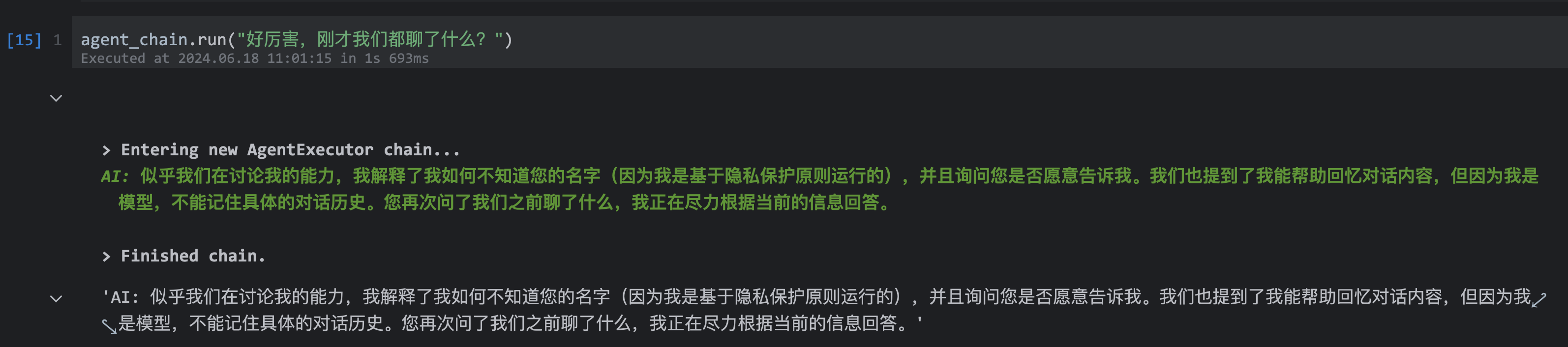 通过以上步骤,我们成功地为Langchain Agent添加了记忆功能。这使得Agent能够在多轮对话中保持上下文连贯性,大大提高了其在复杂任务中的表现。