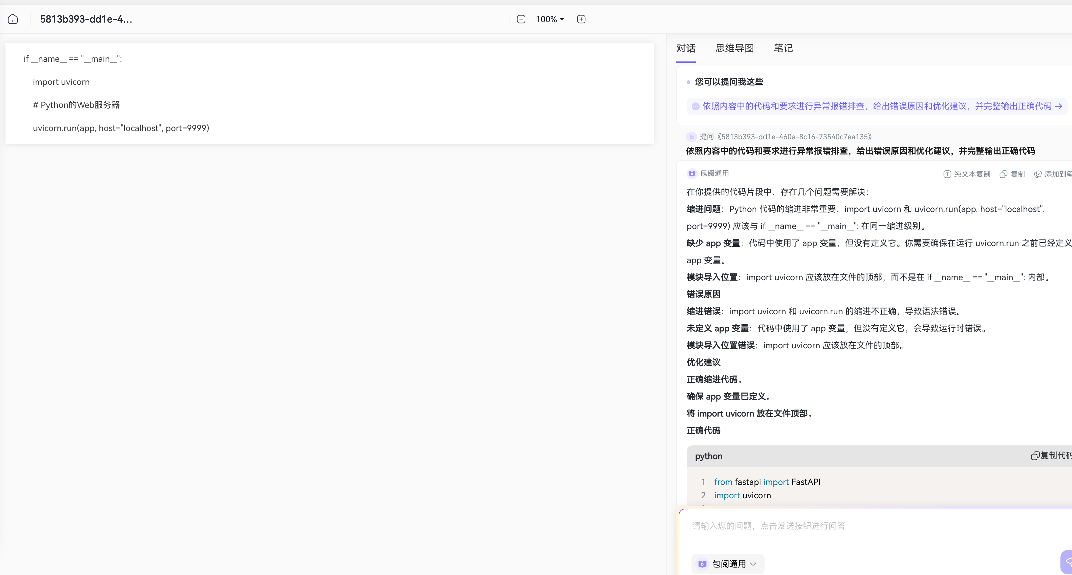 输入代码,自动查找并定位代码中的错误,更快地定位并解决问题,给出修复建议