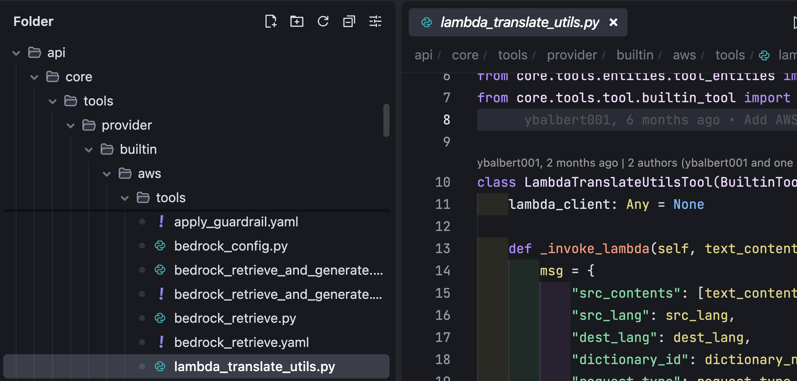 为对接 AWS 服务的连接器,一般利用 boto3 来访问 AWS 服务,Dify 的 Docker 环境中已集成 boto3 的依赖。参考实现:
