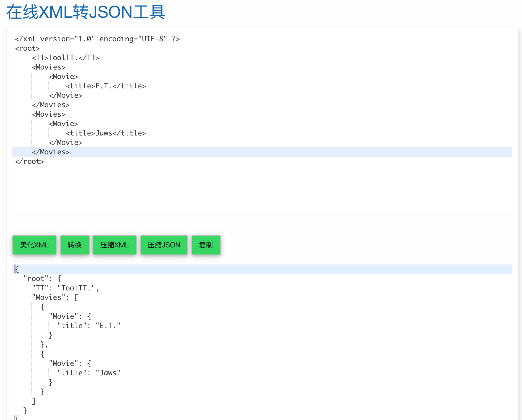 [在线XML转JSON工具](https://tooltt.com/xml2json/)